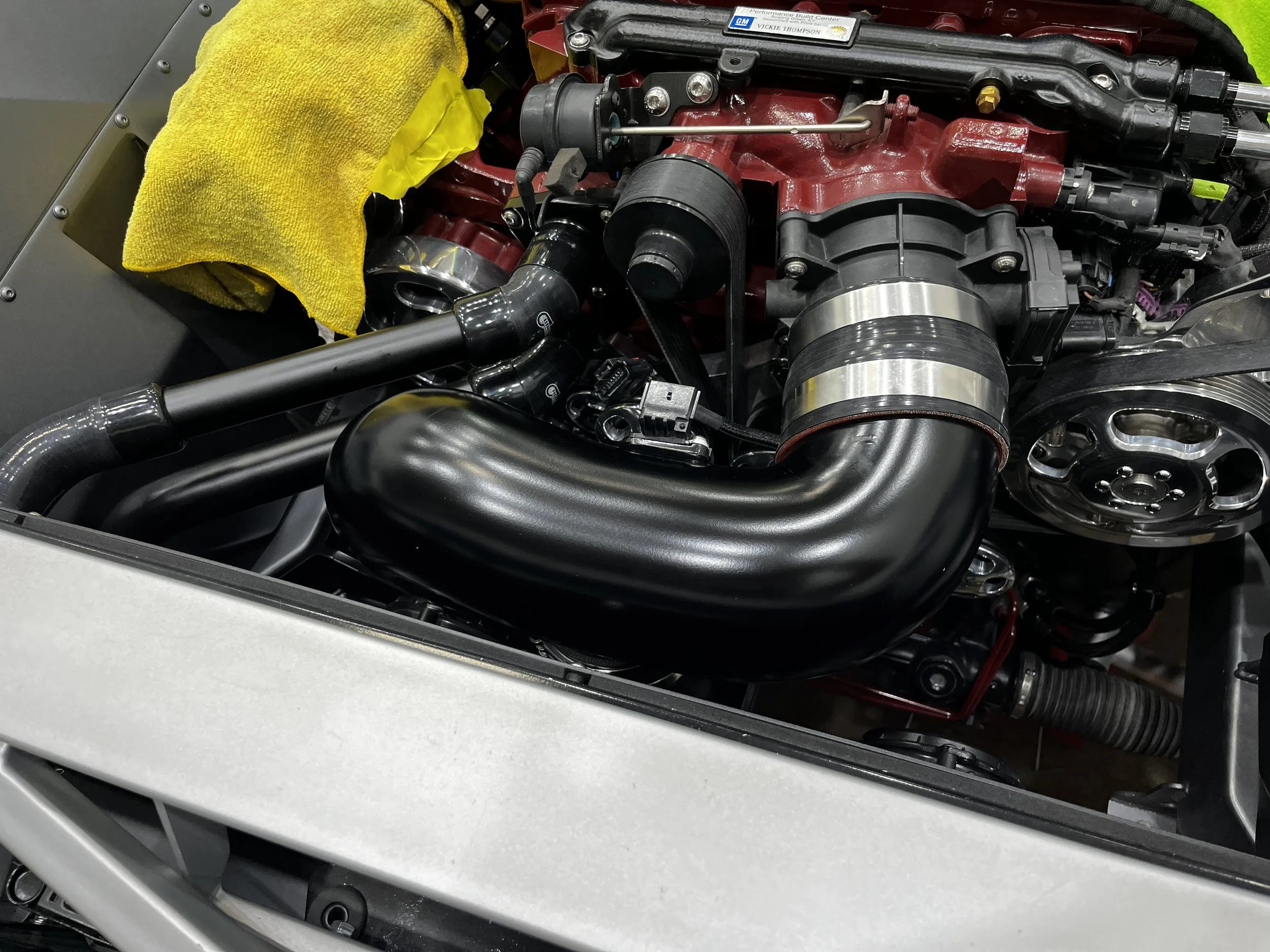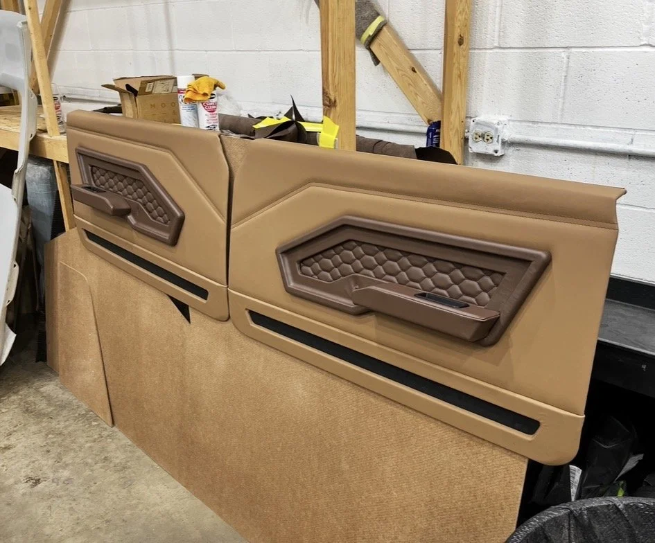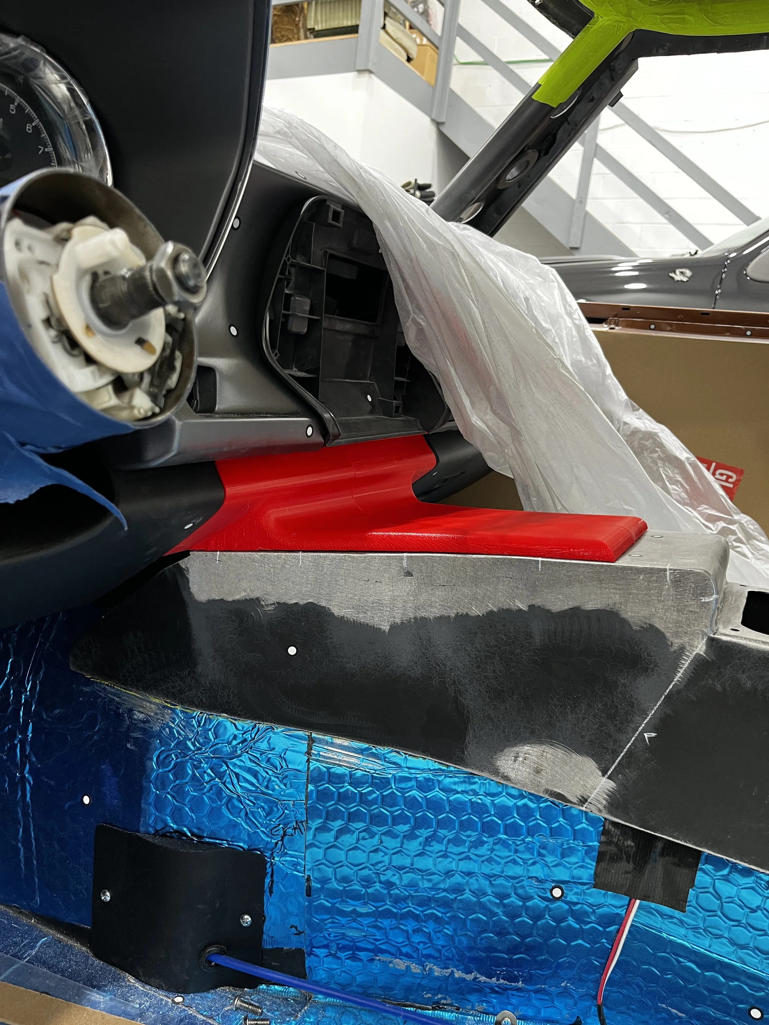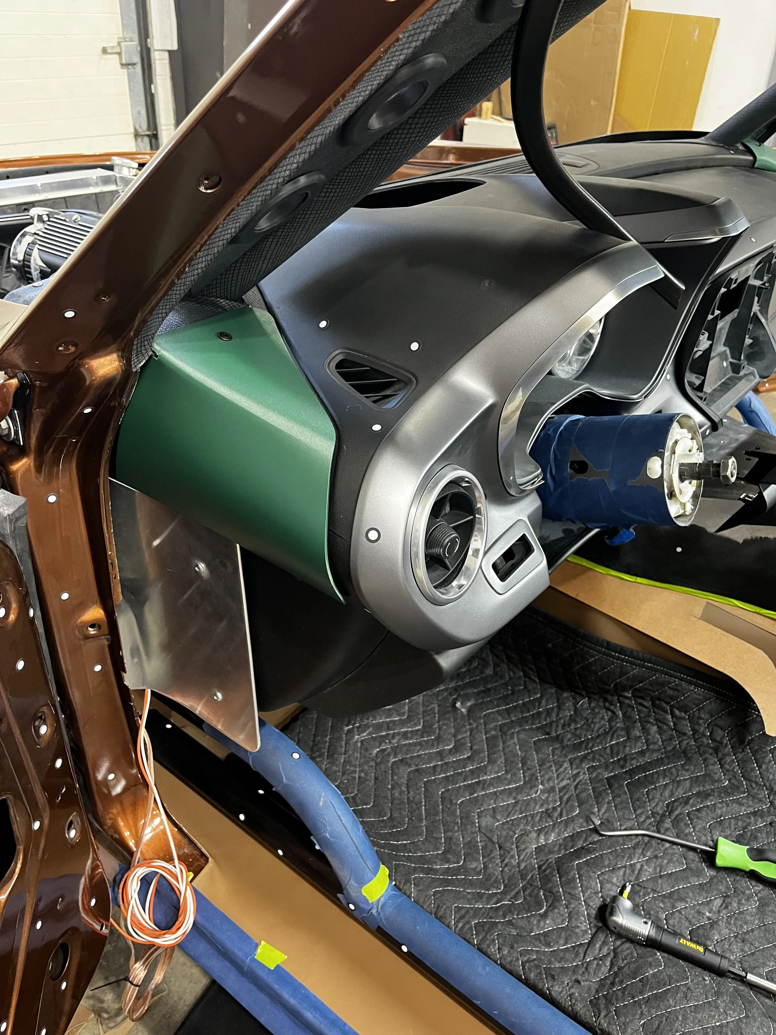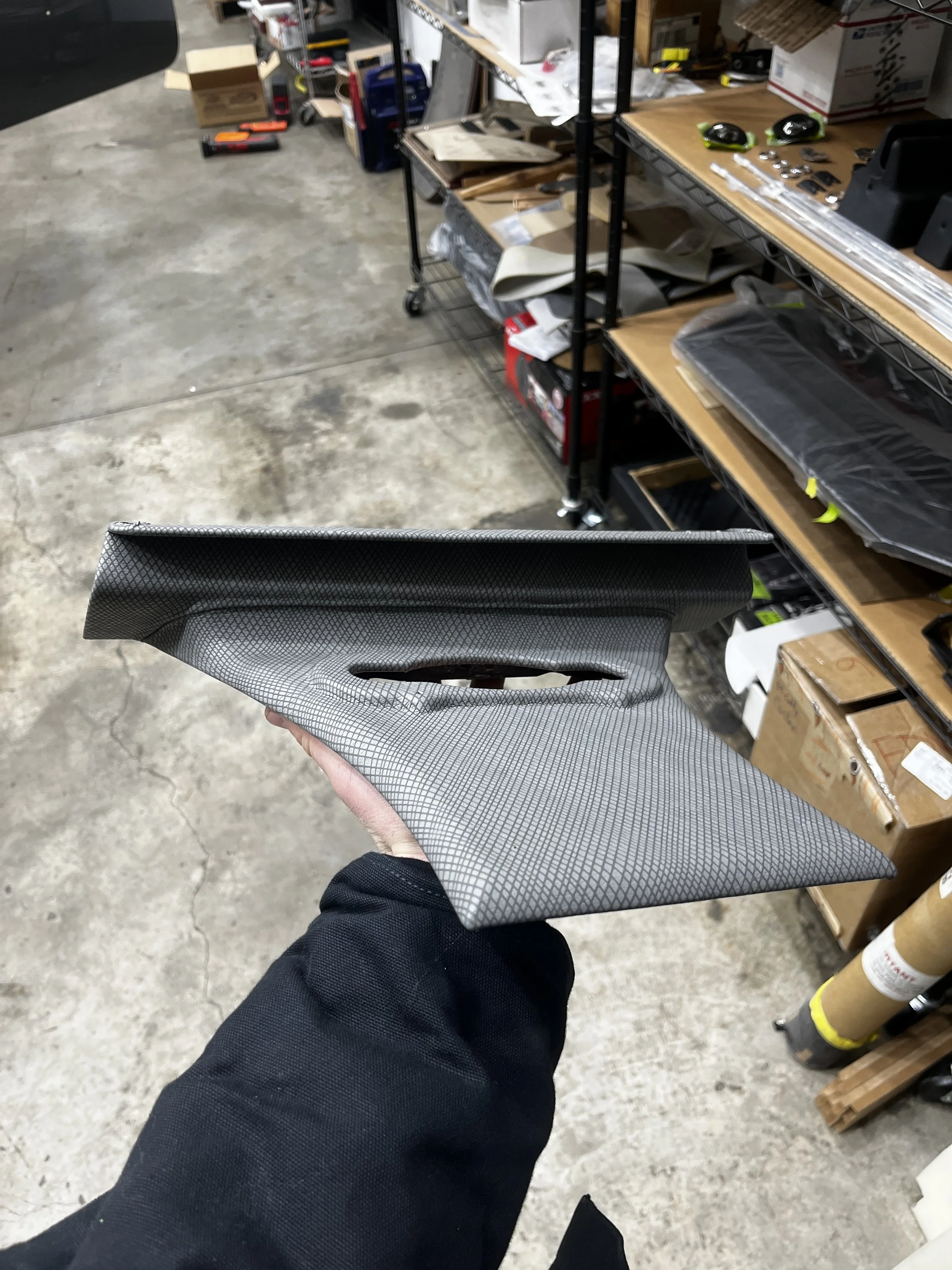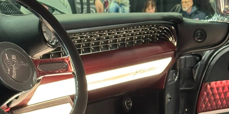 With a modern Hemi fitted to this classic, we 3D printed a cold air induction system utilizing the factory intake provision in the grill that funnels air in. To hold the gauges we designed 3D printed this bezel as well as a matching one for the passenger side and finished with leather.