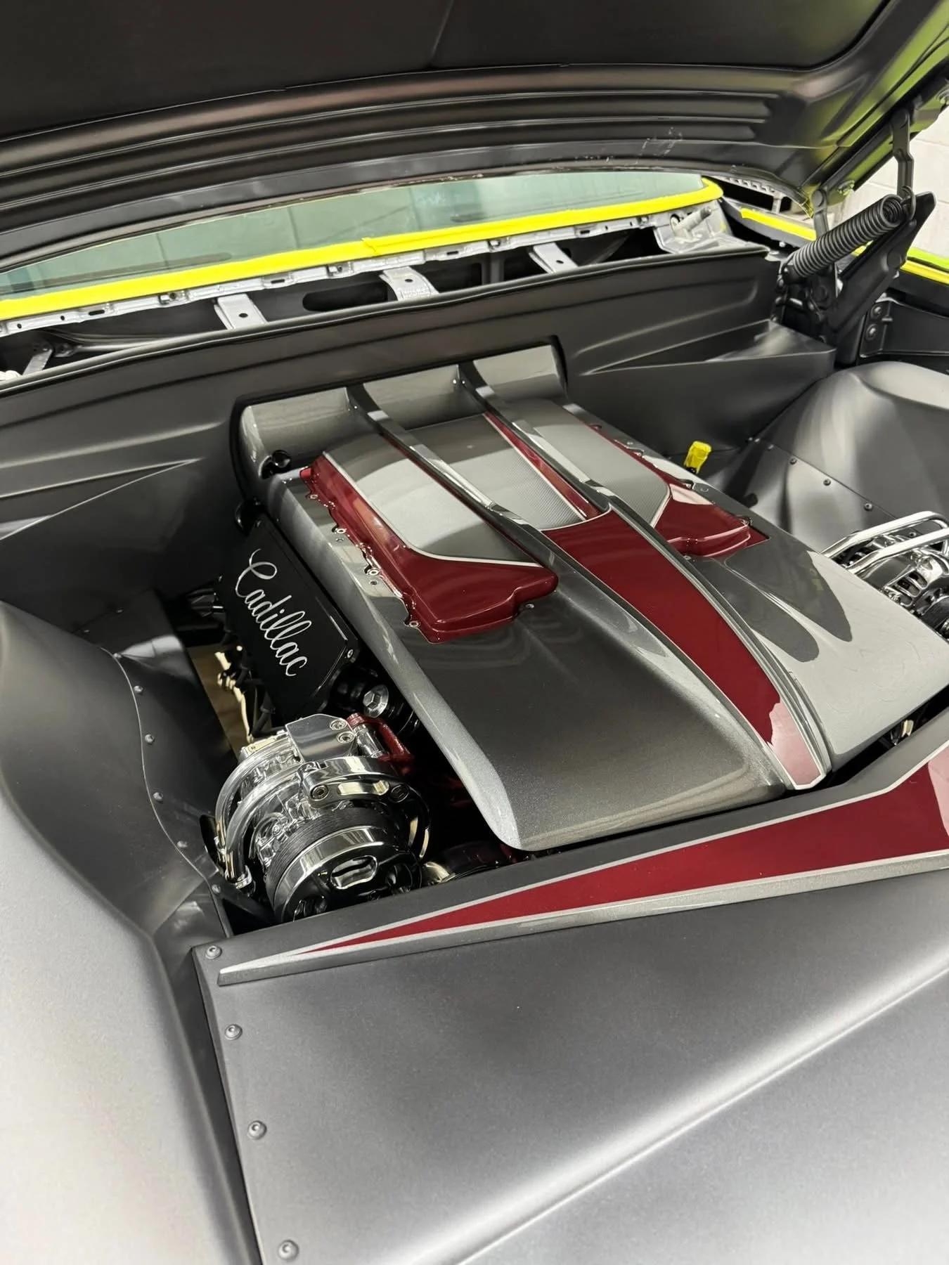 The 1959 Cadillac features 3D-printed components that include a sculpted engine cover, tailored underside cover panels, and a dash insert to pay homage to the bullet design of the front bumper.